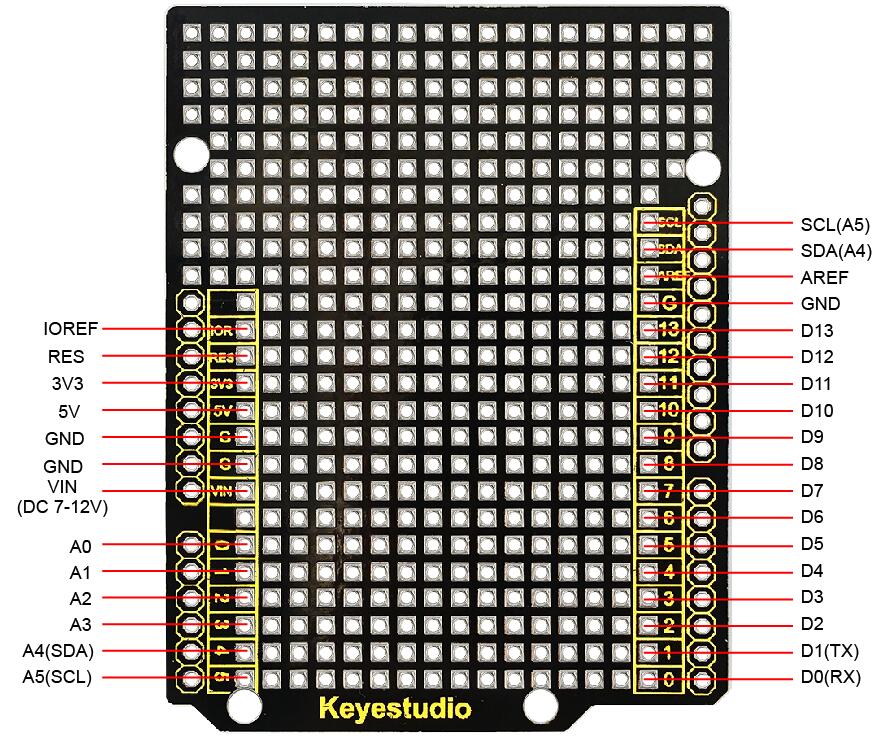 After soldering the pin headers of 2.54mm pitch on the through-holes of PCB, it can be seamlessly plugged into UNO R3 controllers. It also comes with four 3mm fixed holes for tight mounting.